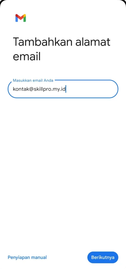 4. Masukkan alamat email `@skillpro.my.id` Anda, lalu ketuk Berikutnya.