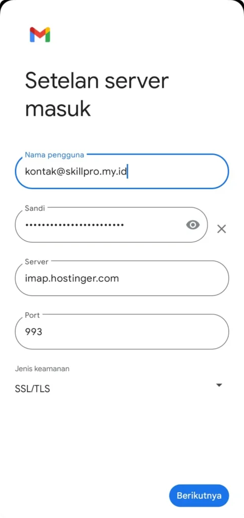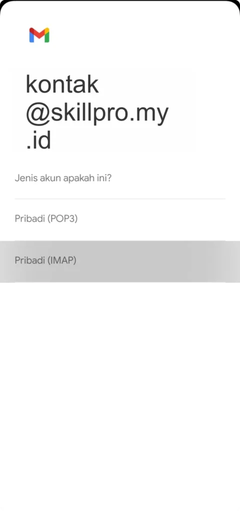 Untuk menambahkan email dengan domain `@skillpro.my.id` menggunakan IMAP/POP3 di HP Android, ikuti langkah berikut: