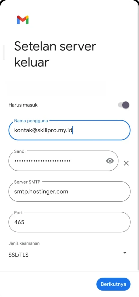 – Port: Biasanya 465 atau 587 (tergantung pengaturan penyedia).
