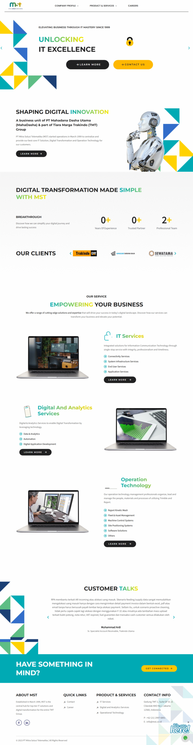 Kami adalah tim profesional yang berpengalaman menciptakan nilai bagi pelanggan kami. Agensi digital kami didirikan lebih dari 5 tahun yang lalu oleh sekelompok pakar TI yang memiliki minat yang sama terhadap teknologi dan visi untuk masa depan dunia digital. Mereka melihat peluang untuk membantu bisnis memanfaatkan kekuatan internet untuk tumbuh dan berkembang, dan lahirlah agensi kami.